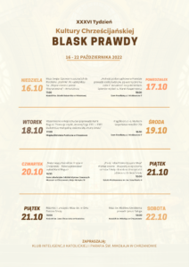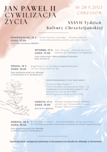 Po raz kolejny Klub Inteligencji Katolickiej wraz z parafią św. Mikołaja  w Chrzanowie oraz Miejską Biblioteką Publiczną i Muzeum Chrzanowskim przygotował obchody XXXVIII Tygodnia Kultury Chrześcijańskiej w Chrzanowie.